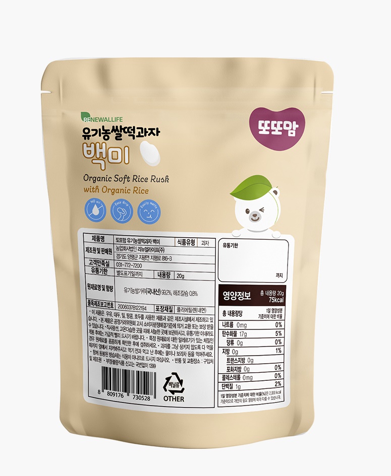 Thành phần: Gạo hữu cơ Hàn Quốc (99.2%), Canxi rong biển (0.8%)