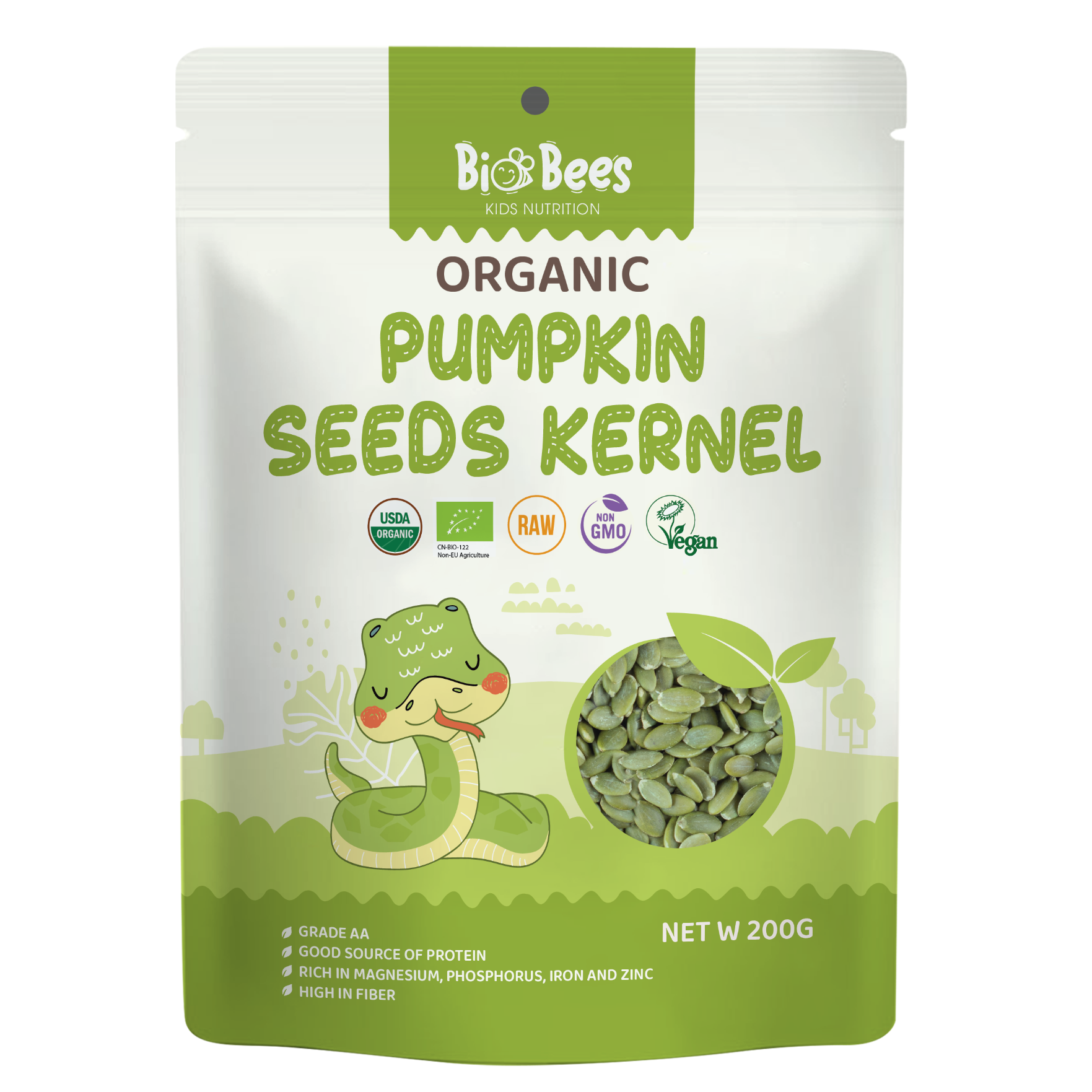 Hạt bí hữu cơ là hạt từ quả bí ngô, được canh tác hữu cơ, Non-GMO, an toàn cho sức khỏe. Sản phẩm giàu Omega-3, Omega-6, vitamin B & E, sắt, magie, kẽm, mangan, giúp tăng cường miễn dịch, hỗ trợ xương, răng, da, tóc. Chứa chất chống oxy hóa tốt cho tim mạch, ngăn ngừa ung thư. Cung cấp protein cao với 9 axit amin thiết yếu, đặc biệt là tryptophan giúp giảm stress, ngủ ngon.