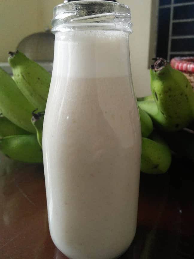 - Cho tất cả vào máy xay, ấn nút xay đi xay lại cỡ 3 lần là mịn tơi rót ra cốc uống luôn.