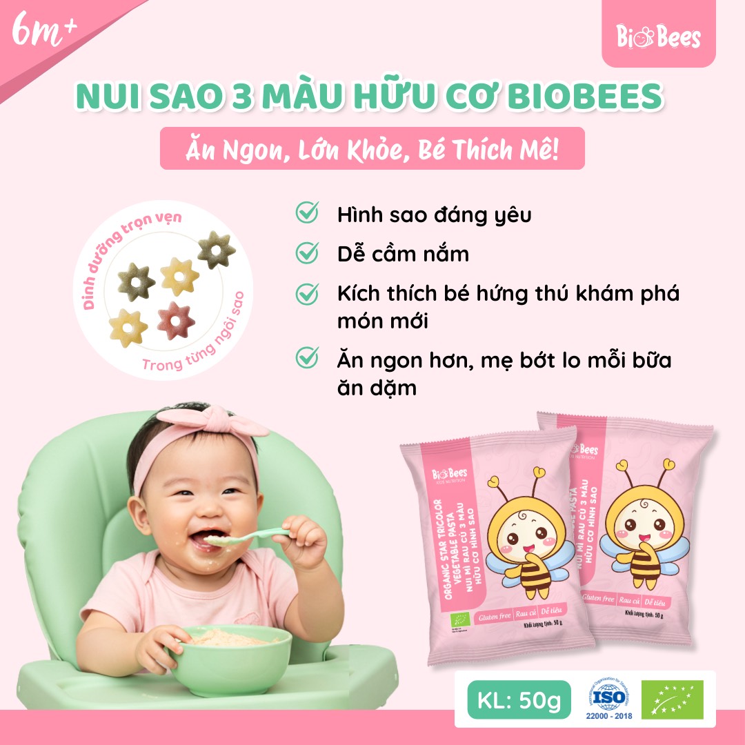 [BIOBEES] Nui mì rau củ 3 màu hữu cơ hình sao 50g cho bé từ 6 tháng