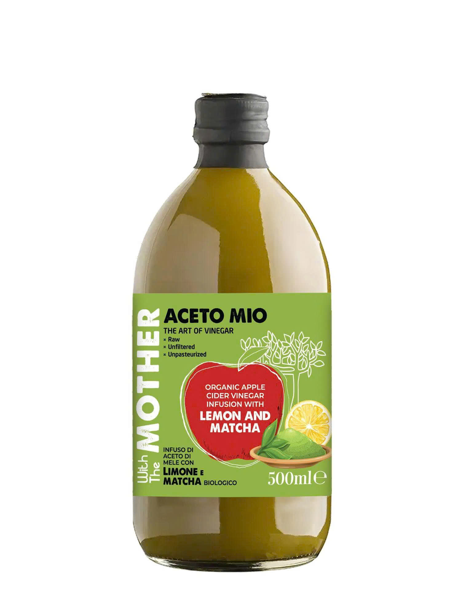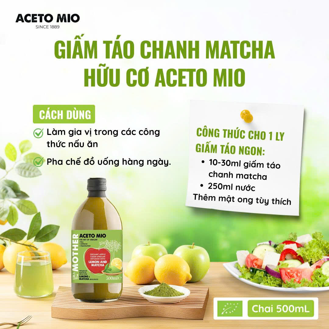 Giấm táo mix chanh matcha hữu cơ Aceto Mio (có giấm cái) - Organic Matcha Lemon Vinegar (with the Mother)