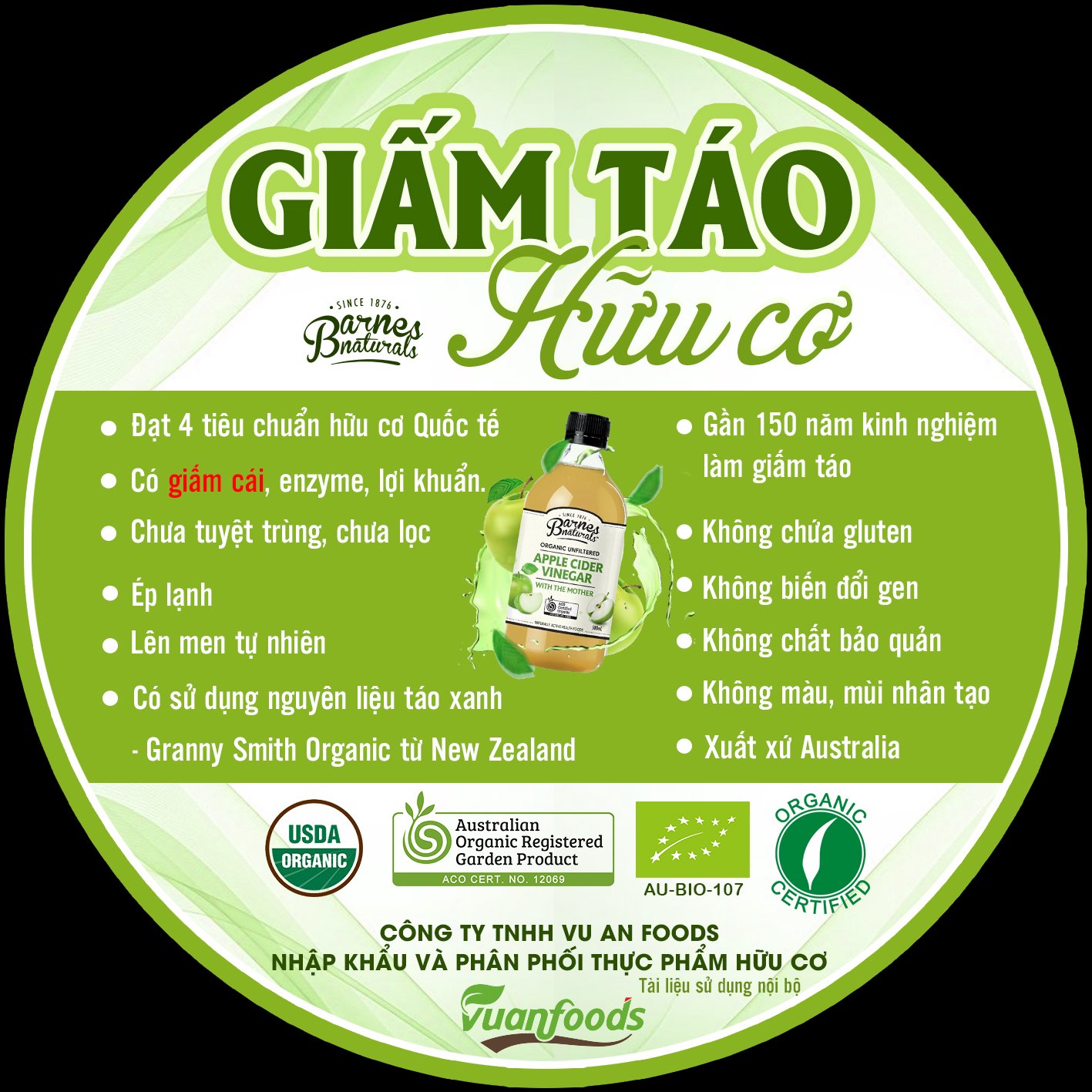 Giấm táo hữu cơ Barnes Naturals (có giấm cái) Organic Apple Cider Vinegar (with mother)