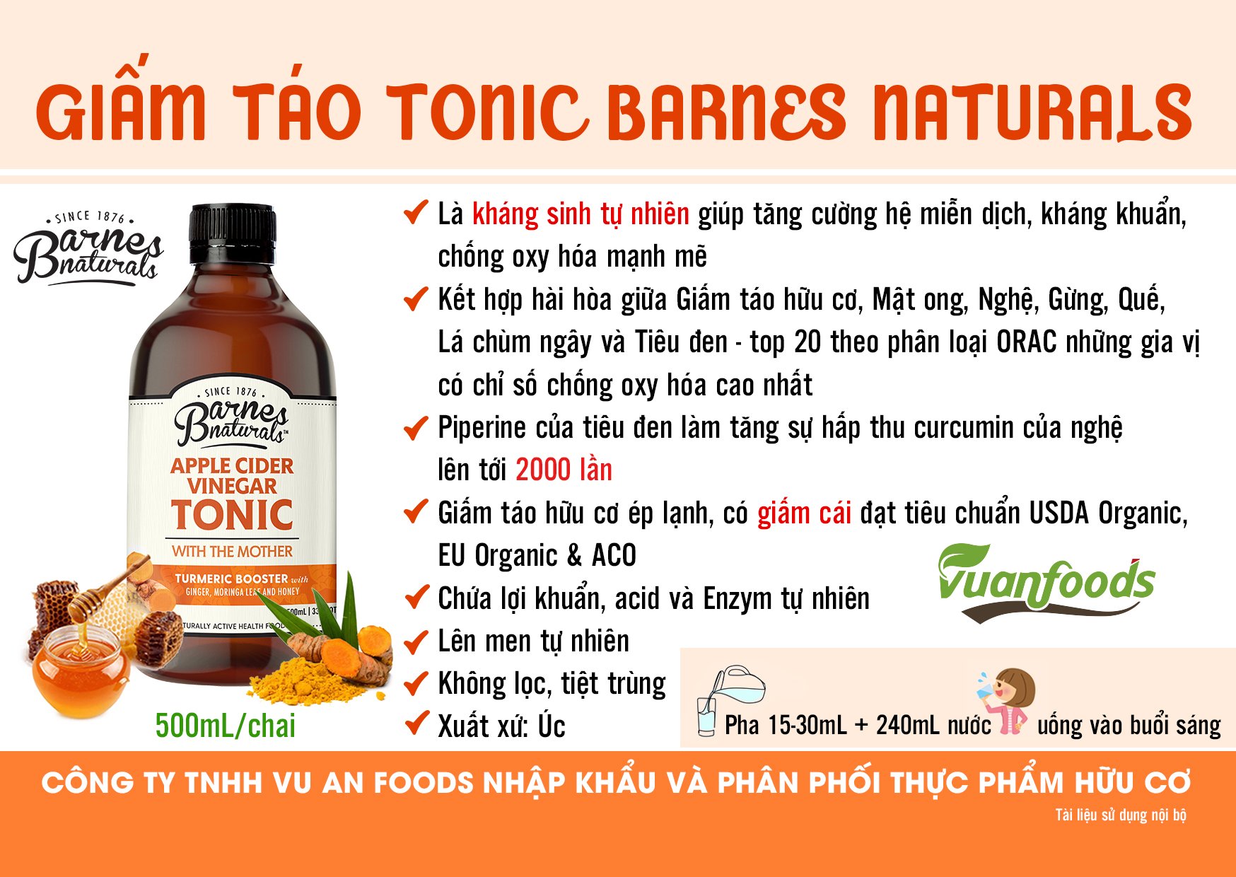 Xuất xứ: Úc Quy cách: 500mL/chai x 6 chai/thùng Thành phần: Giấm táo hữu cơ có chứa giấm cái, mật ong, gừng, nghệ, chùm ngây, tiêu đen Nguyên liệu được dùng để làm giấm táo: Giấm Táo hữu cơ có chứa giấm cái: Táo được sử dụng để làm Giấm táo có nguồn gốc từ Vườn táo hữu cơ được chứng nhận nguyên sơ ở New Zealand. Tùy thuộc vào mùa vụ, các giống...