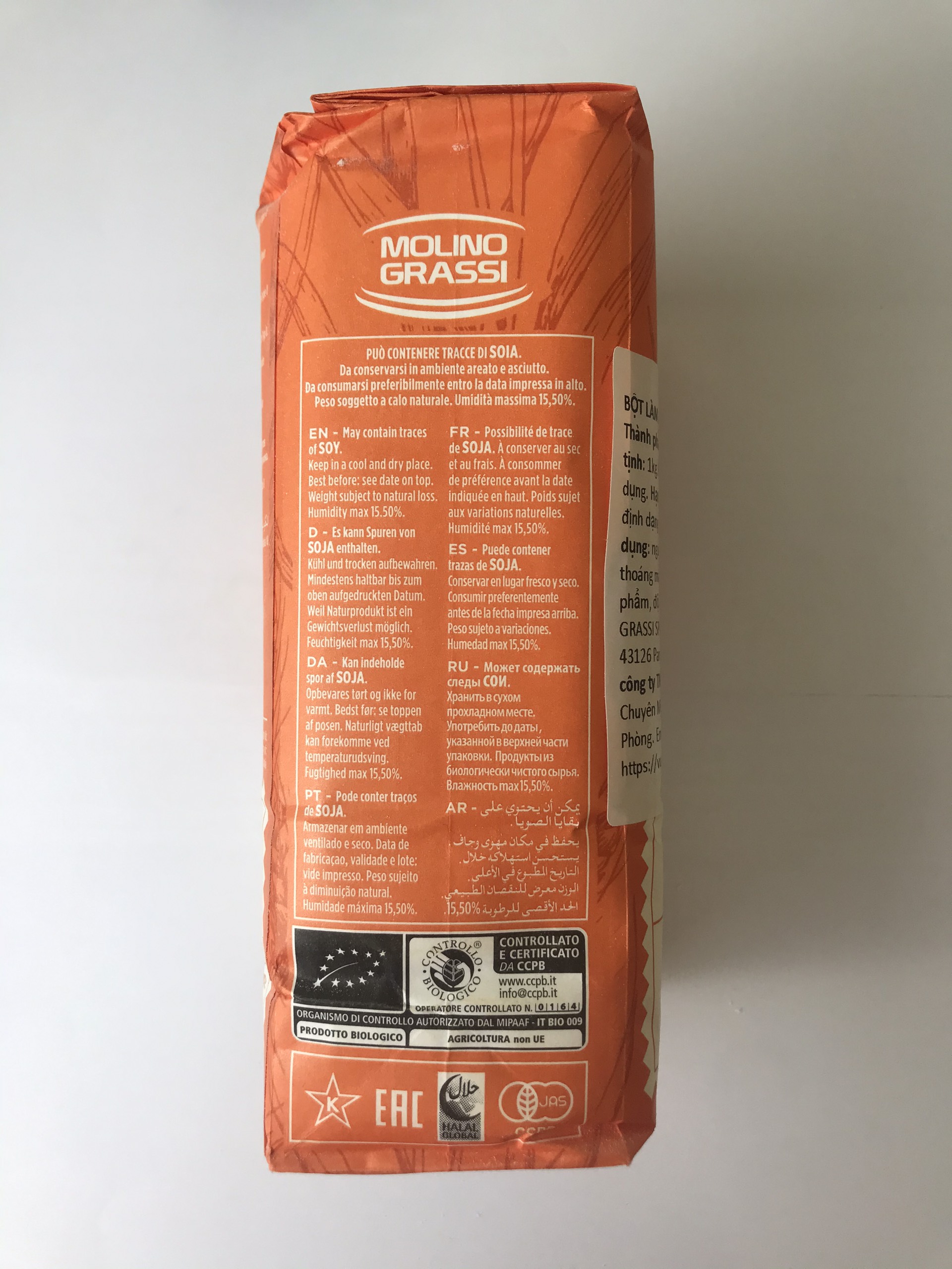 Thành phần: Bột mì mềm hữu cơ loại 0