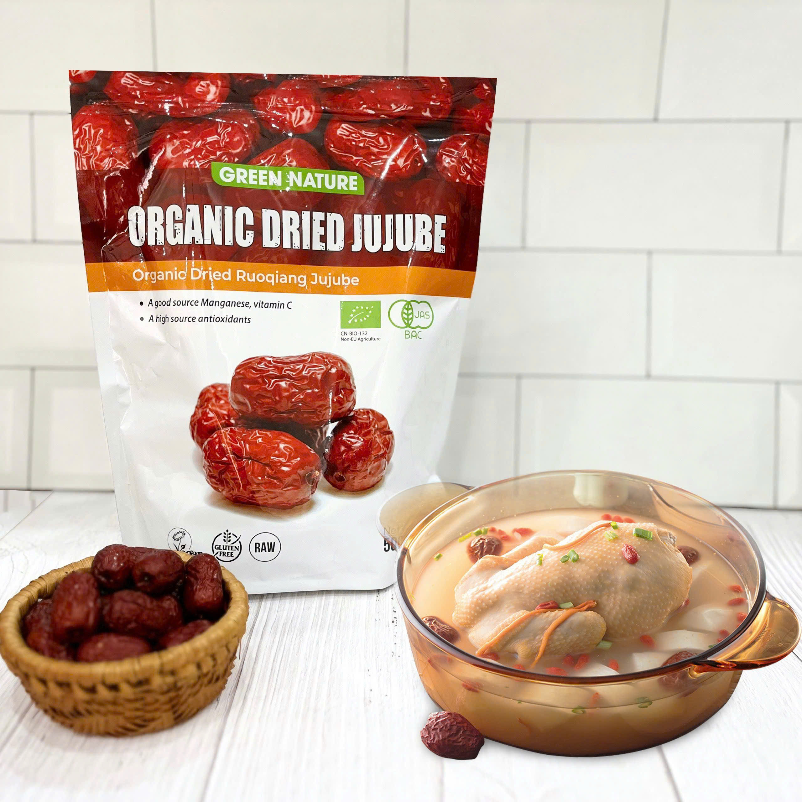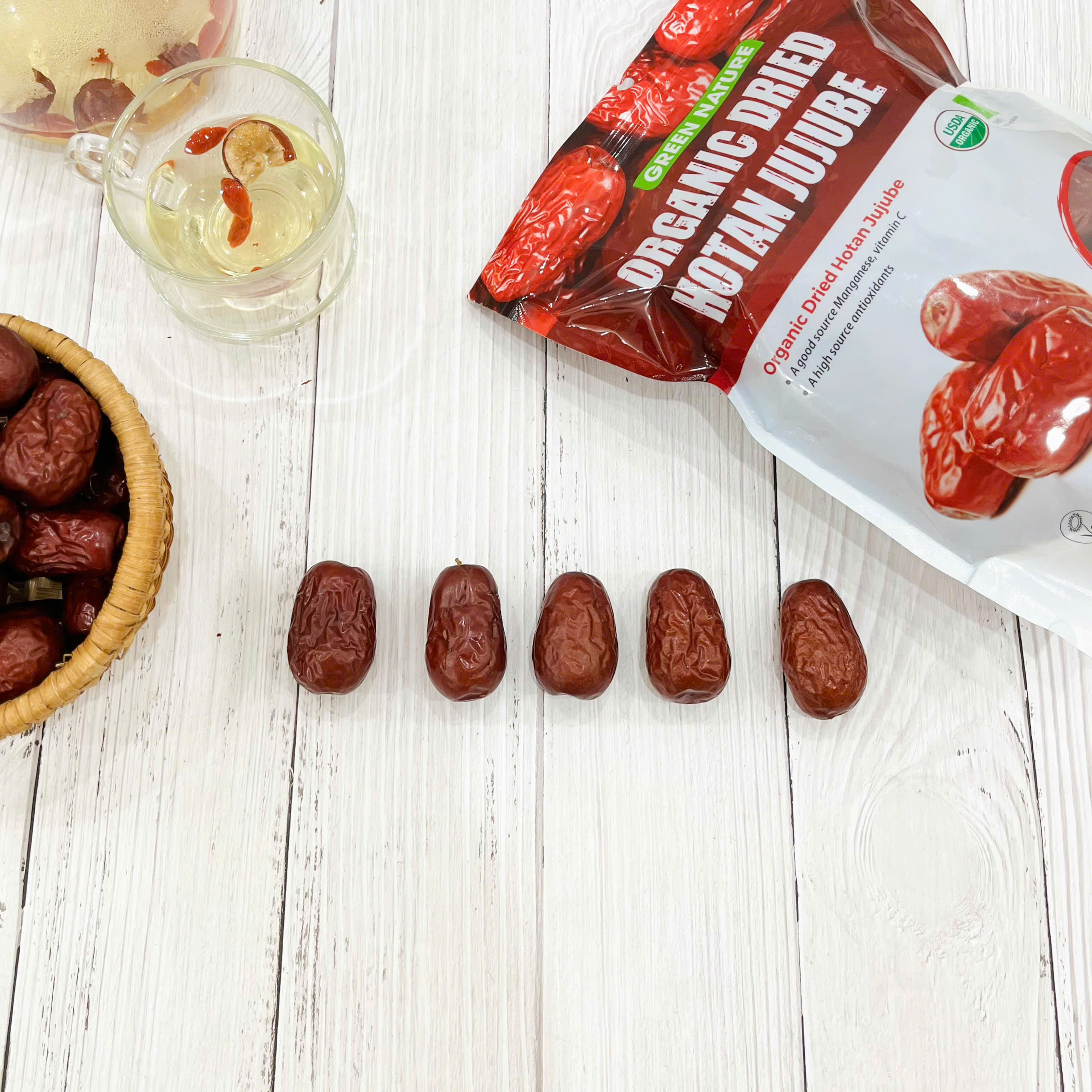 Táo đỏ hữu cơ Ruoqiang (Nhược Khương – Tân Cương): Dày cùi, chắc thịt, giữ kết cấu tốt khi hầm nấu – lý tưởng để nấu cháo, hầm canh hoặc chưng yến.