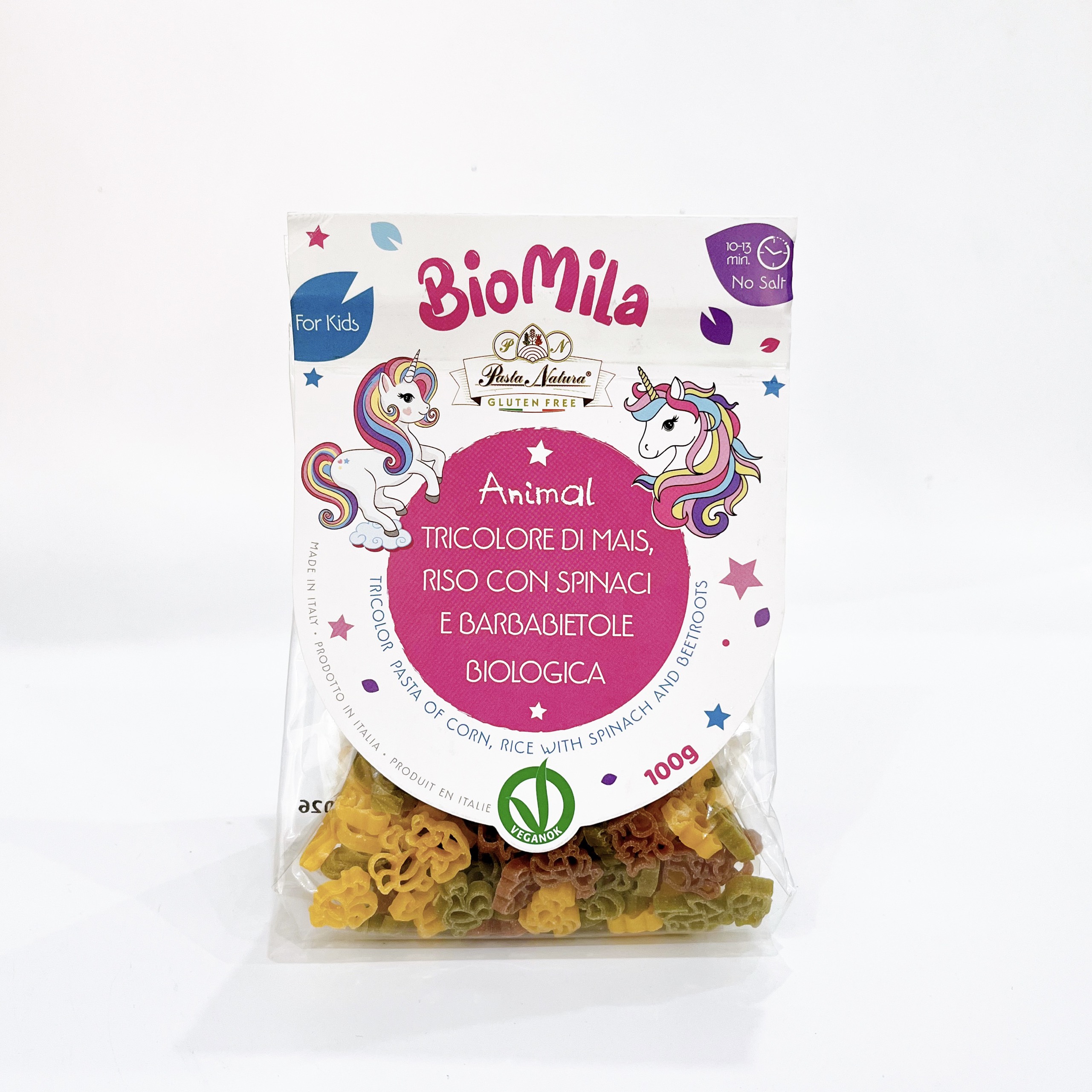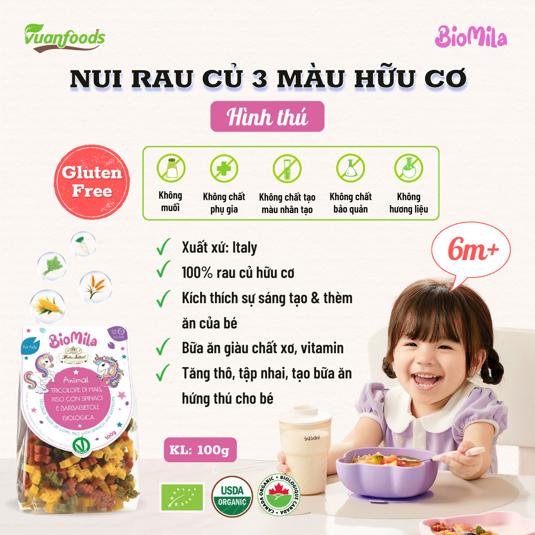 Nui mì rau củ 3 màu hữu cơ BioMila hình thú cho bé 6 tháng tuổi