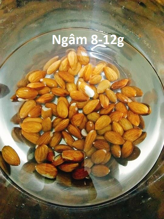 - Hạnh nhân ngâm qua đêm 8-12 giờ, không cần lột vỏ bởi vỏ hạnh nhân chứa rất nhiều chất chống oxi hóa.